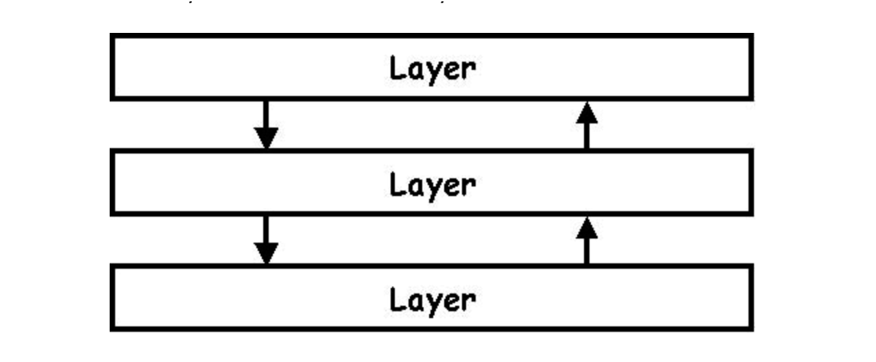 分层系统使用层来分隔不同的功能单元。每一层只与该层的上层和下层通信。每一层都使用下面的层来执行其功能。层之间的通信通过预定义的固定接口通信。