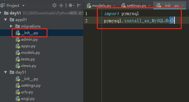2、在项目文件夹下 __init__.py 导入pymysql(可选)
