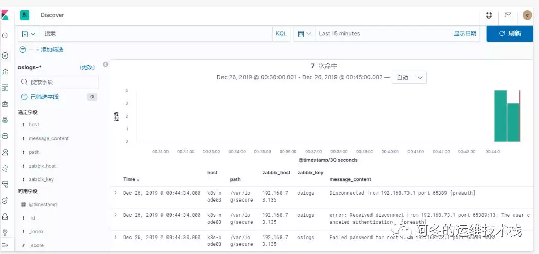 这里面有我们要过滤的关键字Failed,因此logstash会将此内容过滤出来,发送到zabbix上