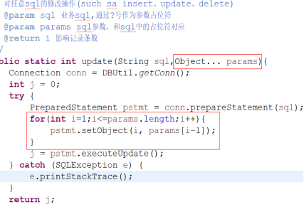 Pstmt = Conn.prepareStatement(sql) // sql中参数 可变长参数 Object