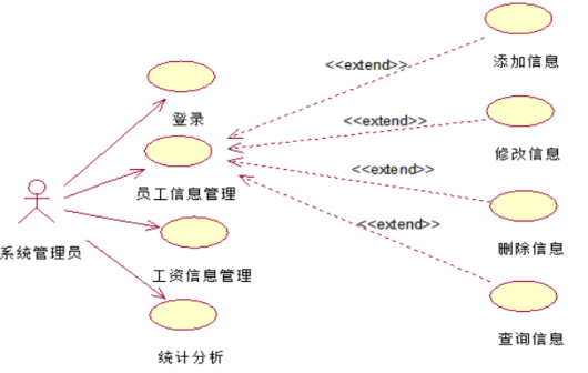 员工:系统的主要使用者,登陆系统后,对自己的基本信息的查询和对自己工资的查询。