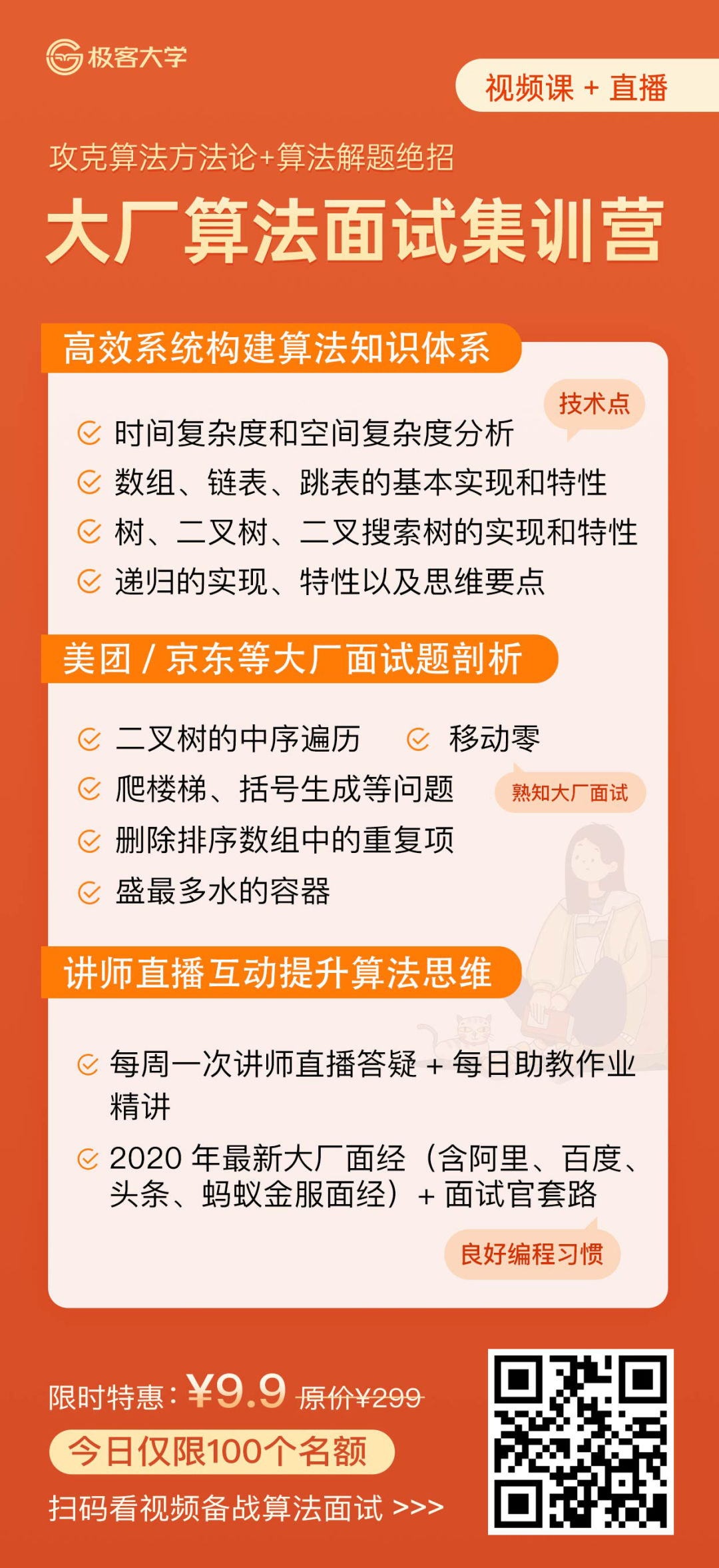 ????仅 100 个名额,戳此抢¥9.9优惠名额攻克算法面试!