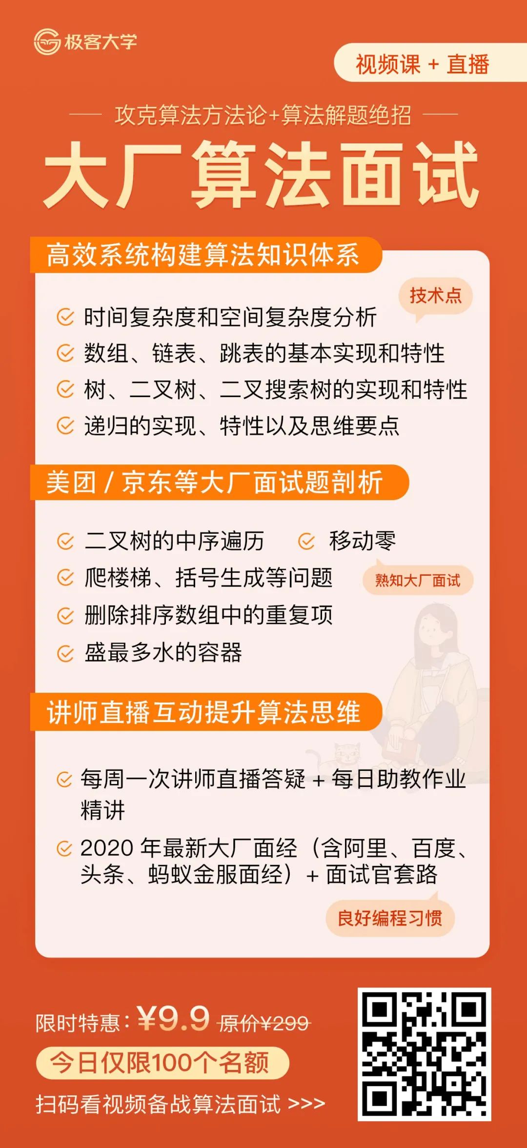 👇仅 100 个名额,戳此抢¥9.9优惠名额攻克算法面试!