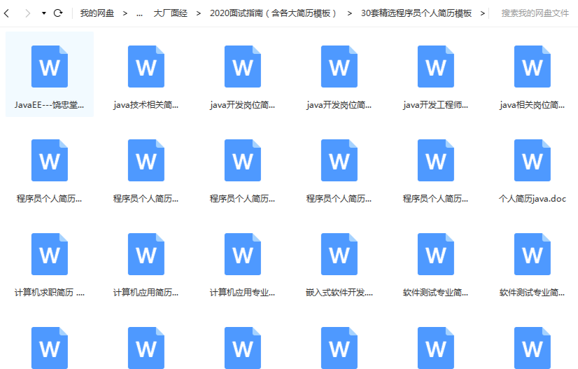 IDEA、Java语法、面向对象、异常、常用类、集合、IO流、多线程、网络编程、JUnit、枚举、注解、反射机制、CSS、HTML、JavaScript、JQuery、ajax、Javaweb、MySQL、JavaEE、SSM框架、springboot、算法、Git、maven、Linux、设计模式、多线程与高并发、视频教程、视频源码、实战项目、电子书、简历模板、高频面试题等等资源。
