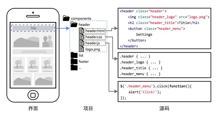 其中第二项描述的就近维护原则,是我觉得最具工程价值的地方,它为前端开发提供了很好的分治策略,每个开发者都将清楚的知道,自己所开发维护的功能单元,其代码必然存在于对应的组件目录中,在那个目录下能找到有关这个功能单元的所有内部逻辑,样式也好,JS也好,页面结构也好,都在那里。