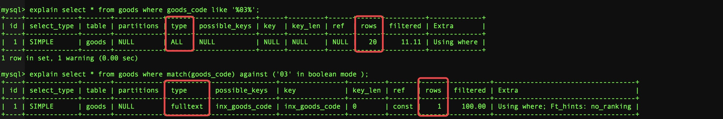 // IN BOOLEAN MODE是只有含有关键字就行,不用在乎位置,是不是起启位置.