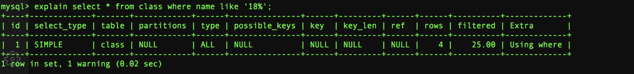 where 子句中出现 column 字段的类型和传入的参数类型不一致的时候发生的类型转换,建议先确定where中的参数类型。