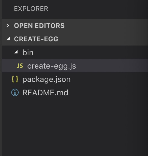 create-egg的目录结构如下,package.json里没有main,却有bin字段,bin字段值是./bin/create-egg.js。当安装create-egg的时,会在当前安装目录下的node_modules/.bin/目录放置create-egg作为可执行文件。