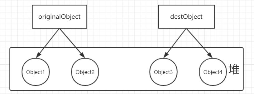 // originalObject 和destObject 中的 birthday 都指向的是 date 这个对象,如果 date 改变,它们两个都会受到影响。