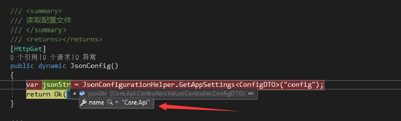 这里是写的一个公共方法去读取配置文件appsettings.json
