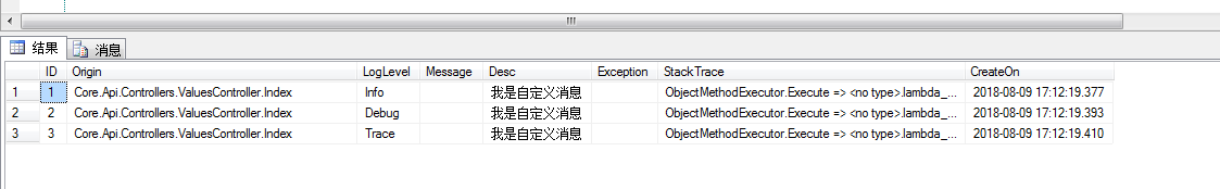 同第六项代码一样,也是在Configure方法设置,写入日志到数据库