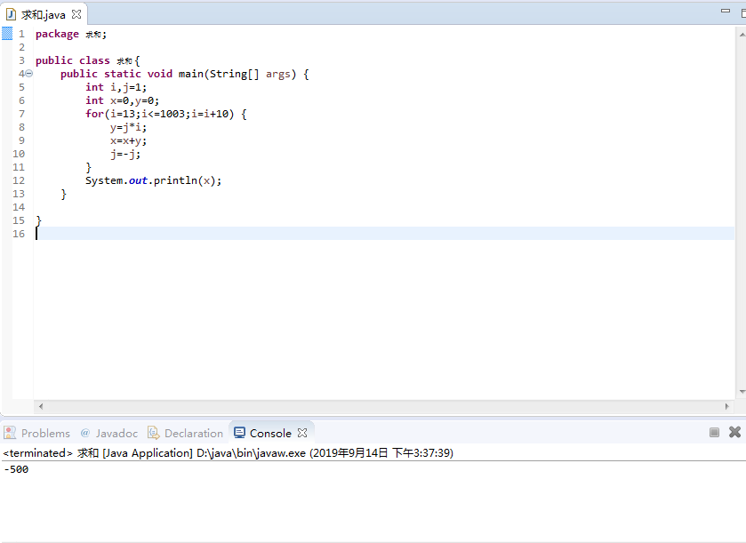 ② 1、题目:编写Java程序,求13-23+33-43+…+973-983+993-1003的值。 2、实验代码
