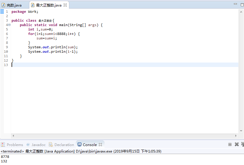 ⑥ 1、题目:编写应用程序,输出满足1+2+3+…+n<8888的最大正整数。 2、实验代码