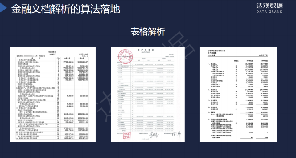 上图列举了三个财务报表,在金融行业俗称叫三大表,资产负债表、现金流量表和利润表。三大表信息相对来说比较固定,的格式对于人来说差不多,但是对于机器来说有很大的差别。
