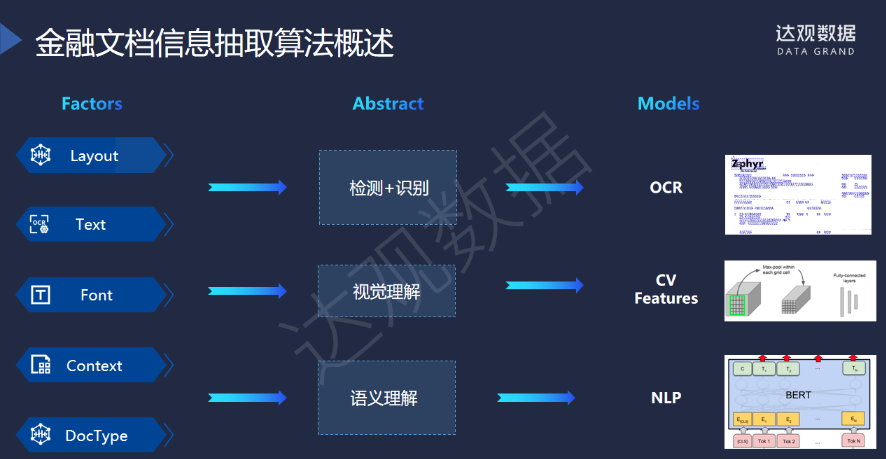 可以做三种归类:OCR 的文本信息、字体信息和文字本身,文字本身通常指是不是有语义上信息,比如金额就肯定是数字,字段不会出现像汉字或者是英文字符等等。这些细节都是在抽取时要考虑的信息,实际上就是综合各类信息的多模态的抽取。