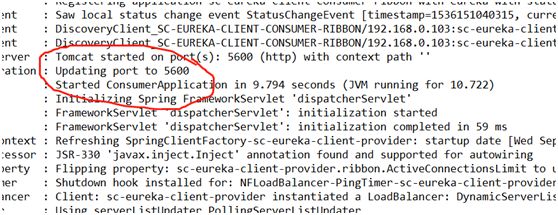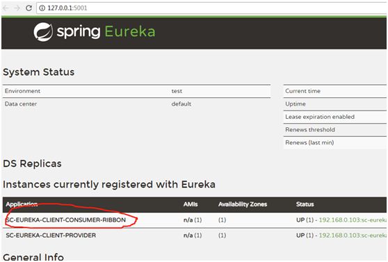 7、 启动服务消费者sc-eureka-client-consumer-ribbon,并验证是否启动成功