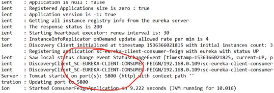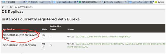 6、 启动项目sc-eureka-client-consumer-feign,并验证是否启动成功