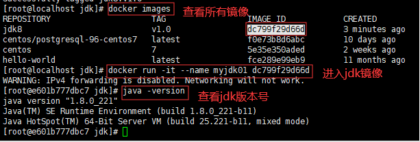 注1:-t jdk8:v1.0 给新构建的镜像取名为 jdk8, 并设定版本为 v1.0