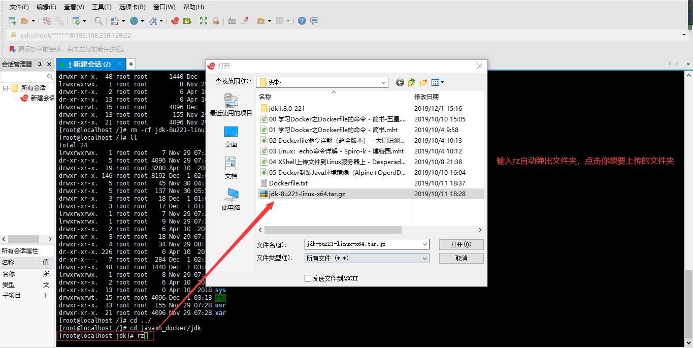 #安装lrzsz命令 yum install lrzsz -y //没有就下载,有就不用下载,我之前一直下载失败,我以为镜像有问题,结果发现他自己有。#选择文件进行上传 rz