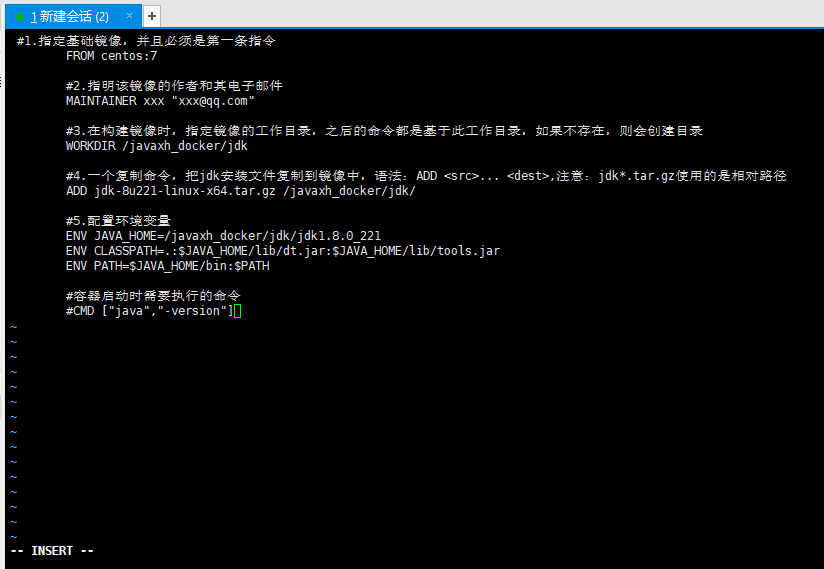 执行vi Dockerfile 把下面的内容放进Dockerfile文件中: