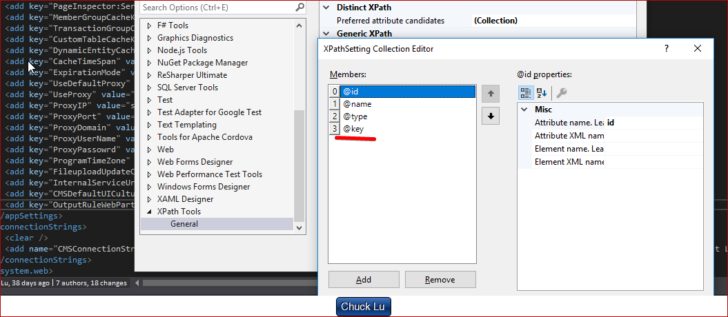 在Distinct XPath中新增一个key,这样可以拿到appSettings下面的key/value的xpath