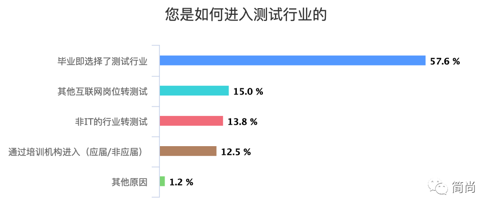 从这份样本数据得到的报告来看,近60%的从业者,毕业即选择了软件测试这条路 ,从此一条道走到黑 。