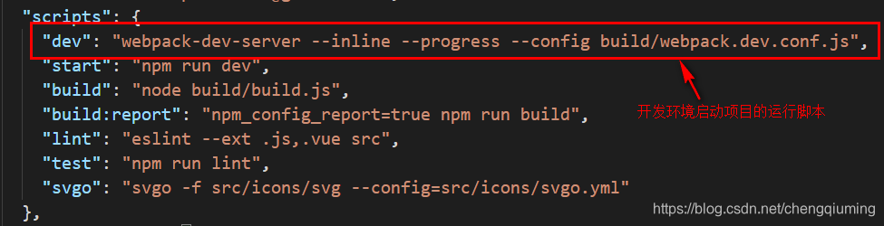 dev脚本:webpack-dev-server --inline --progress --config build/webpack.dev.conf.js