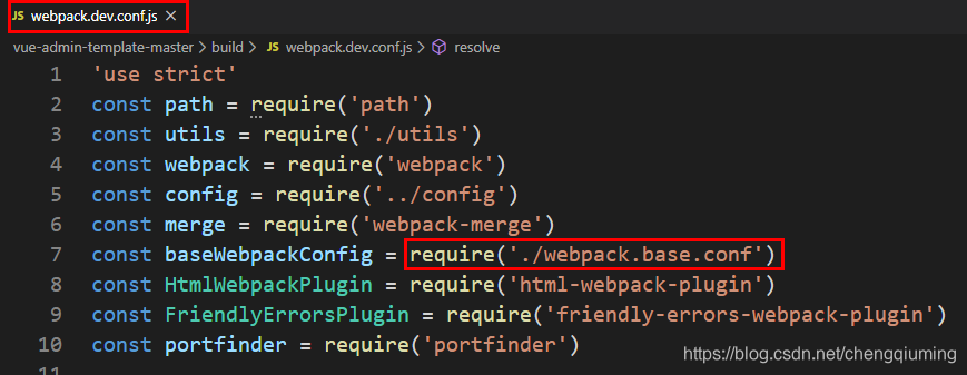 webpack.dev.conf.js 中引用了 webpack.base.conf.js