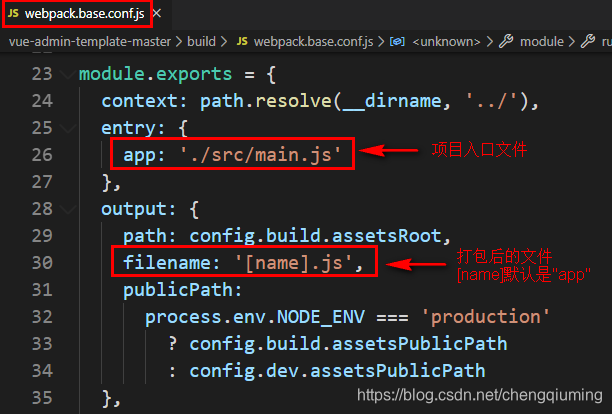 webpack.base.conf.js 中定义了项目打包的入口文件
