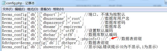 6、查看config.php配置文件,发现成功写入配置文件