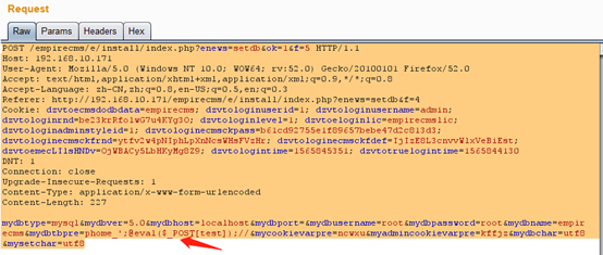 5、通过对整个install过程的代码分析,可以发现没有对用户数据进行过滤,导致配置文件代码写入。
