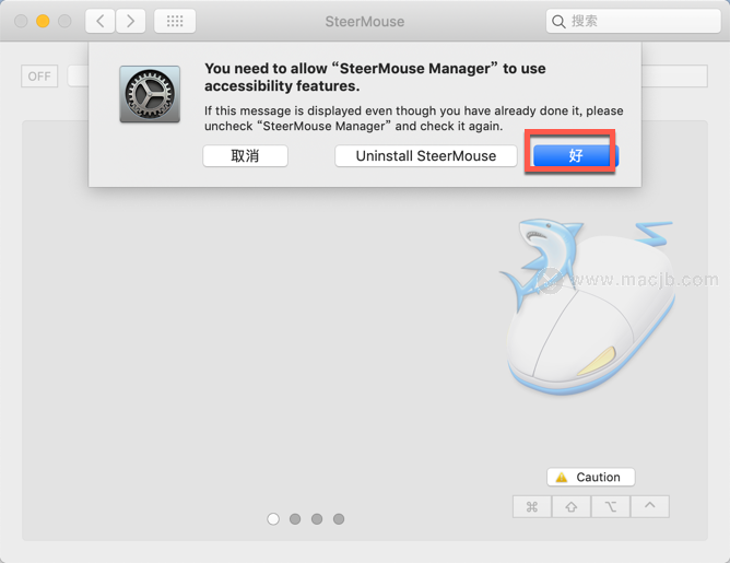 根据SteerMouse安装提示,我们点击【打开系统偏好设置】