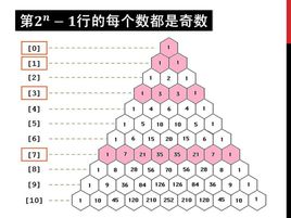 杨辉三角,是二项式系数在三角形中的一种几何排列,在中国南宋数学家杨辉1261年所著的《详解九章算法》一书中出现。在欧洲,帕斯卡(1623----1662)在1654年发现这一规律,所以这个表又叫做帕斯卡三角形。帕斯卡的发现比杨辉要迟393年,比贾宪迟600年