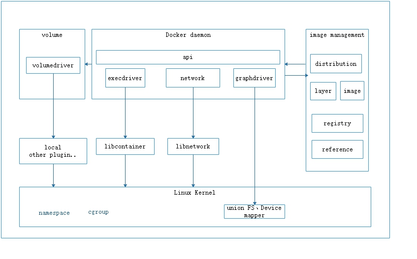 docker daemon的架构可以分为:docker server、engine、job。daemon