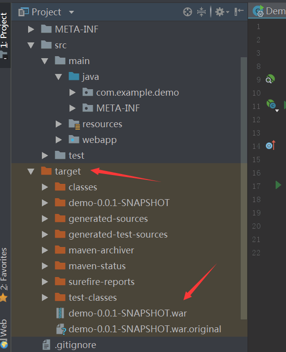 打包完成以后会在target目录下生成war包,如图