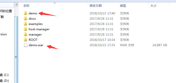 tomcat启动成功以后,会自动解压war包。如下图