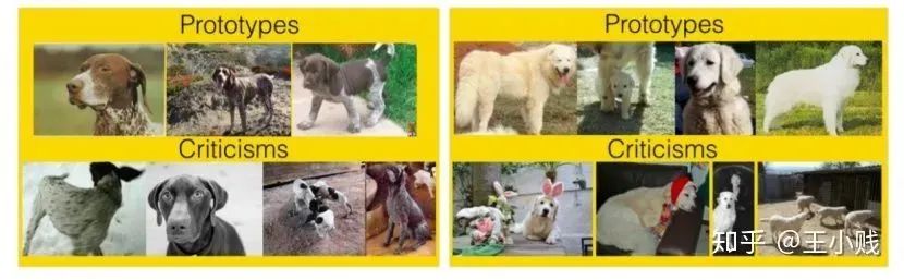 使用MMD-critic从Imagenet数据集中学到的代表性样本和非代表性样本(以两种狗为例)