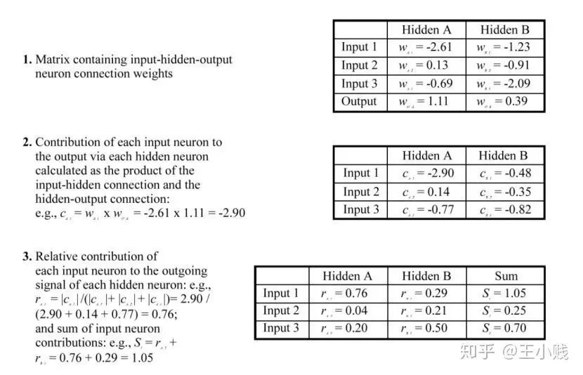基于连接权的方法中比较有代表性的工作是Garson等人1991年在《Interpreting neural network connection weights》提出的方法,这种来自于“远古时期”的智慧相对来说就要简单粗暴一点。输入变量