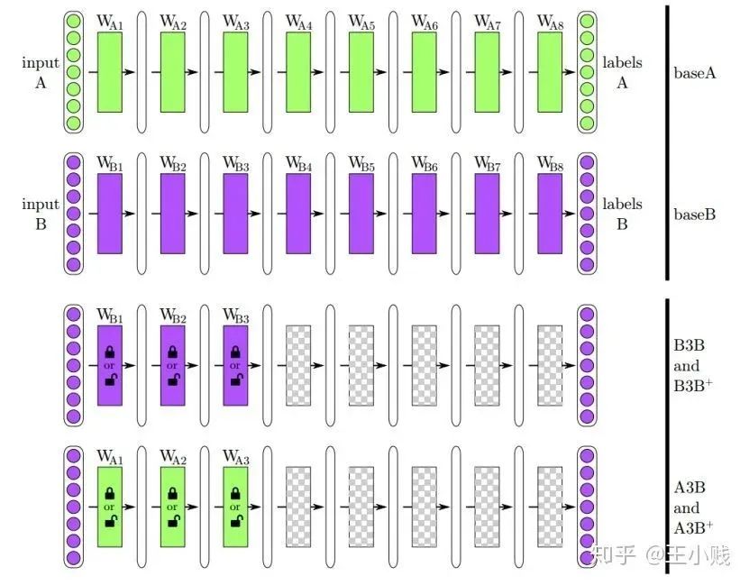 一个迁移网络A3B+,网络结构和A3B一样,但所有层都是可学习的