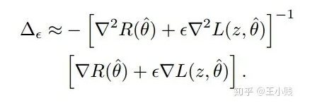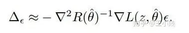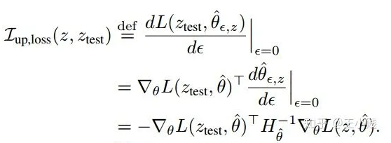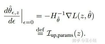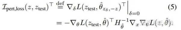 这个也就是影响力函数的表达式,根据这个定义,作者推导出了提升某个训练样本的权重或者对训练样本施加轻微扰动之后对特定测试样本损失函数的影响: