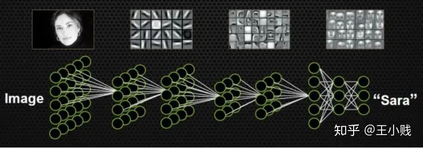 而通过一些对神经网络隐层的可视化我们也发现:比如下图的一个人脸识别的例子,神经网络在这个过程中先学到了边角的概念,之后学到了五官,最后学到了整个面部的特征。