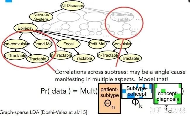 主要是利用信息的稀疏性特质,将模型尽可能地简化表示。比如如下图的一种图稀疏性的LDA方法,根据层次性的单词信息形成了层次性的主题表达,这样一些小的主题就可以被更泛化的主题所概括,从而可以使我们更容易理解特定主题所代表的含义。