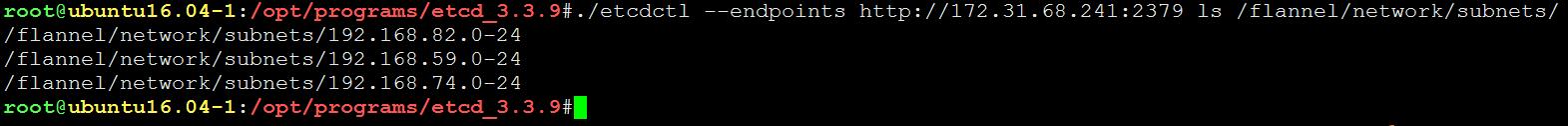 etcdctl --endpoints http://172.31.68.241:2379 ls /flannel/network/subnets/