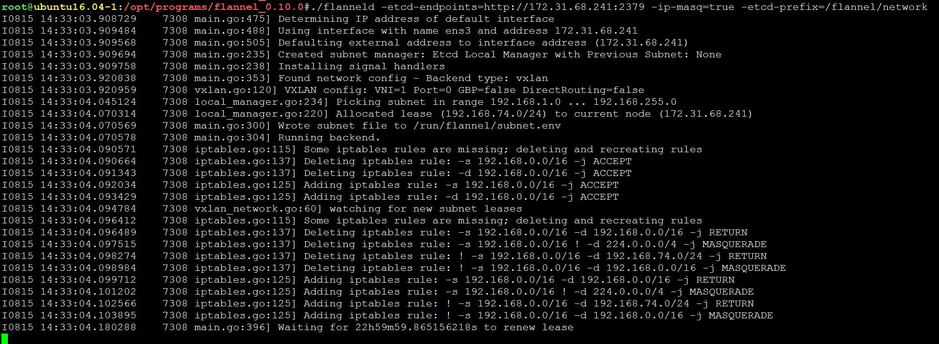 flanneld -etcd-endpoints=http://172.31.68.241:2379 -ip-masq=true -etcd-prefix=/flannel/network