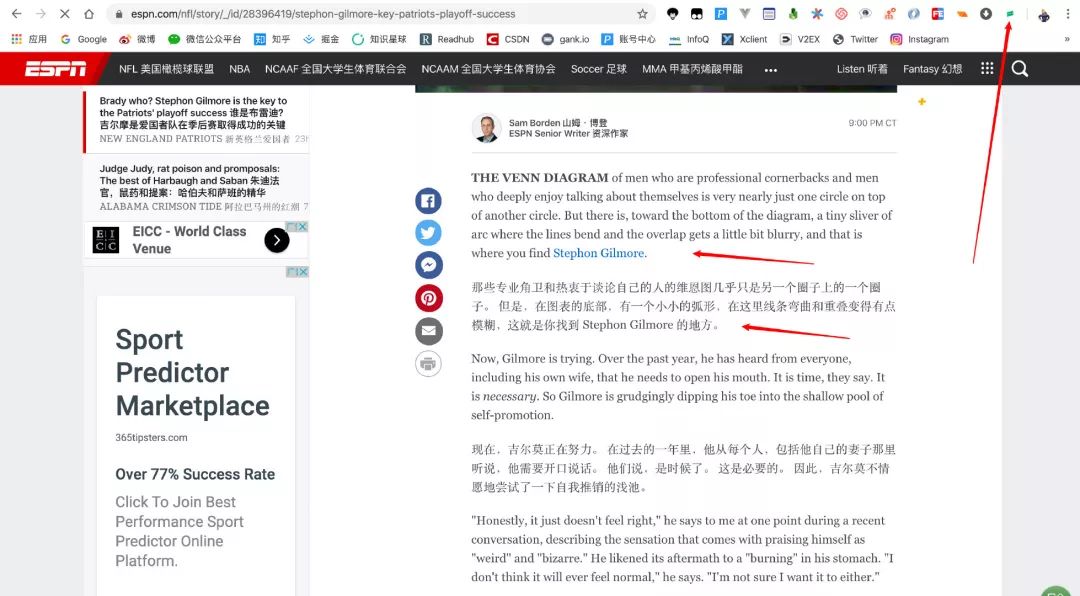 对于我来讲,我喜欢写作,需要找素材,也喜欢体育,经常登录国外的网站,可惜自己的英文不行,所以翻译插件,对于我来讲是个刚需。以前,都是自己使用翻译插件,选择一段一段的翻译,而用了彩云小译之后,真的是特别方便,就像是我上面截图中的一样,它会分段,以中英文对照的形式将网页翻译成中文。