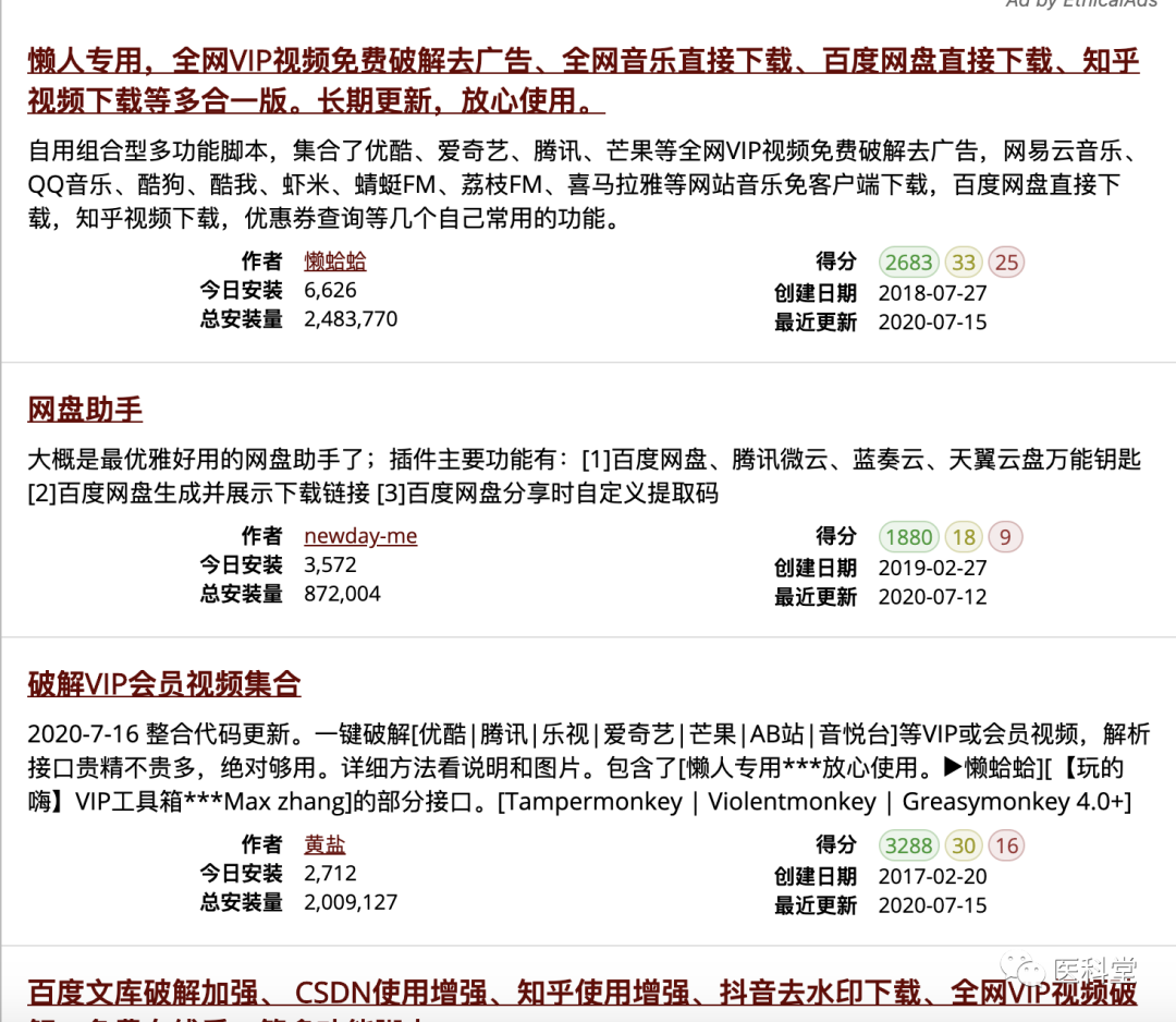 接下来我们就可以自由的探索安装脚本了,例如视频下载、去广告、网盘助手等。