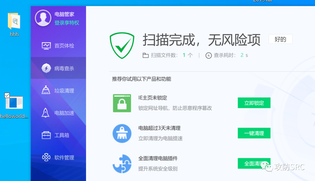 即可成功绕过腾讯电脑管家。接下来就是双击运行,等待CS上线对话做后渗透阶段一把梭了。