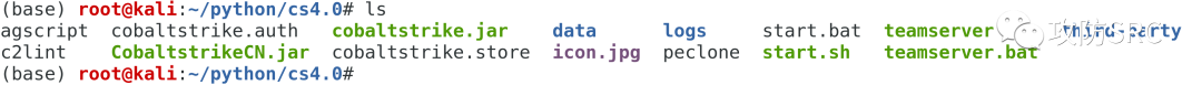 (base) root@kali:~/python/cs4.0# ./teamserver 192.168.91.156 123456[*] Will use existing X509 certificate and keystore (for SSL)[+] Team server is up on 50050[*] SHA256 hash of SSL cert is:[+] Listener: test started!