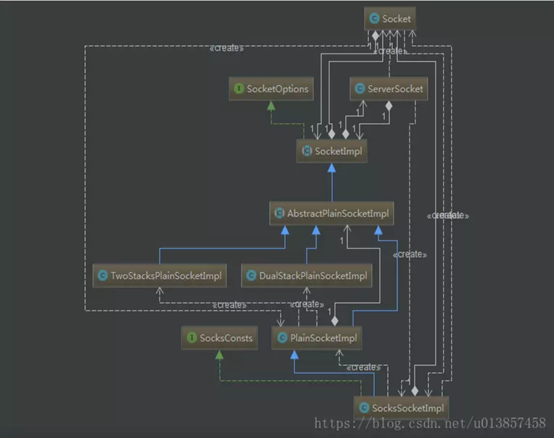 Java中的socket在底层实现时最终是通过调用系统的socket来实现的,下面是java中的socket类的继承关系
