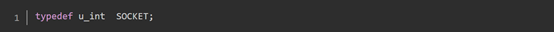 从上方代码看出他是u_int类型的别名,一个文件描述符为什么是int呢?因为在windows编程下主要使用的是句柄,而句柄就是一串int数字这个数字标识这一个内存中的类(这里可以理解在系统中是键值对而这个int则是key,而他获取的对象则就是我们使用accept或bind所需要的),暂时可以这么理解因为即使是内存也是键值对的map,各位读者暂时将这个int当做一个key值而调用其他socket方法都是需要这个key值的没有这个key是操作不了的。